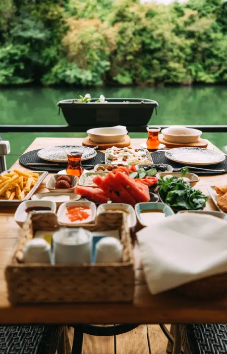 Göksu Nehri’nin huzurlu akışına karşı, güne ev yapımı reçellerle bezeli serpme bir kahvaltıyla başlayın. Akşamları ise iskele üzerinde, yıldızların altında taze deniz ürünleri ve özel marine etlerden oluşan a la carte menümüzle romantik bir akşam yemeğinin tadını çıkarın.