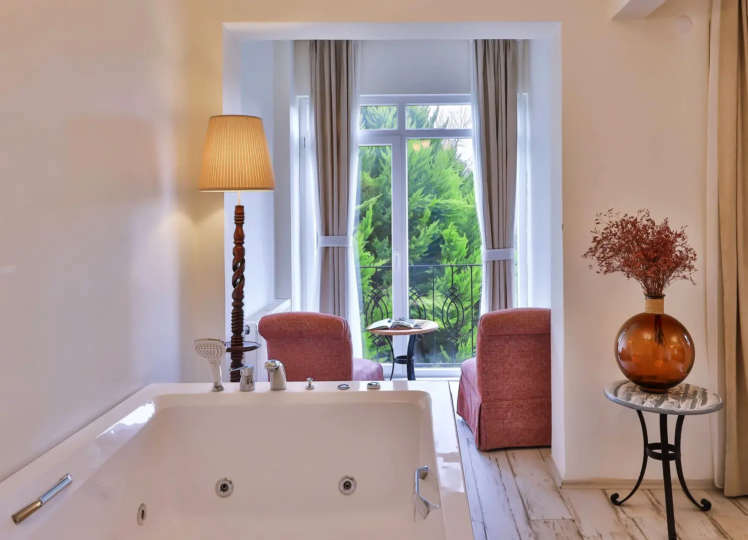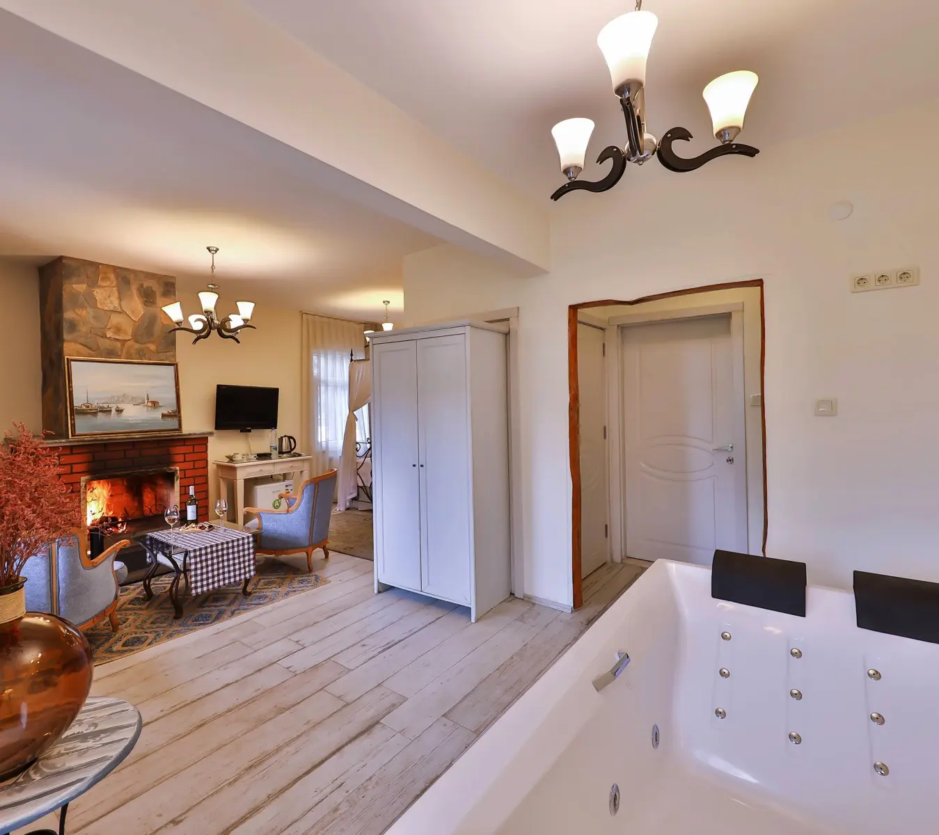 Nehir Manzaralı Jakuzili ve Şömineli Delüks Oda